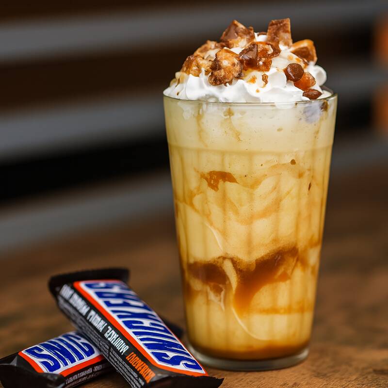 Milkshake cremoso de Snickers com caramelo e toque de flor de sal.