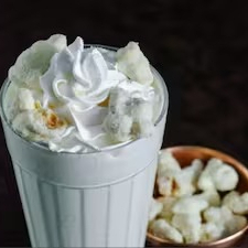 Milkshake de pipoca de leite em pó com sorvete especial de leite em pó, finalizado com creme de leite e chantilly.