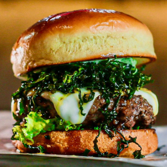 Pão brioche selado, molho especial Dom, hambúrguer bovino suculento de 200g, queijo Canastra maçaricado, crispy de couve, alface e tomates frescos e um toque de melaço.