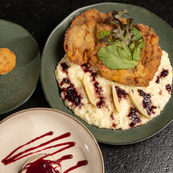 Filé mignon empanado, crocante por fora e suculento por dentro, sobre a cama de risoto de limão siciliano, finalizado com manteiga salsa e queijo,