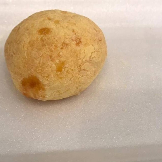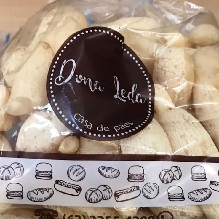 Fabricado por Dona Leda. Ingredientes: polvilho, ovo, oleo e queijo