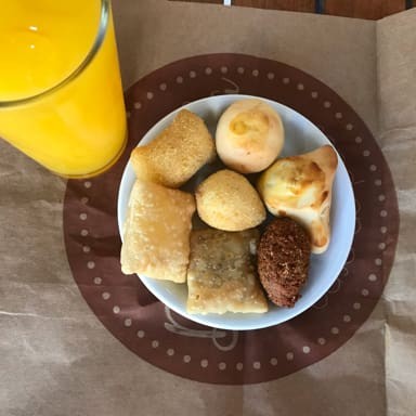 5 Pao de Queijo 5 Enroladinho de Queijo 1 Café Coado 150ml Acompanha 2 Sachê açúcar e 1 de Adoçante