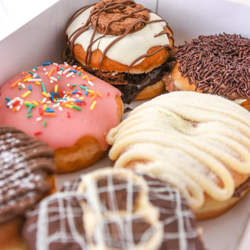 Os 6 Donuts de sua escolha. Sendo 4 recheados e 2 coberturas.