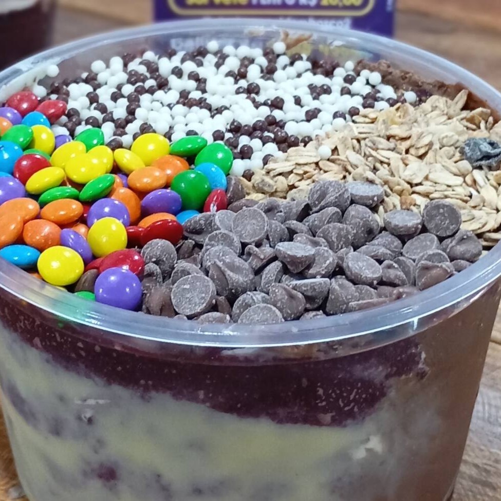 Leite condensado Leite em pó Gotas de chocolate Granola Paçoca