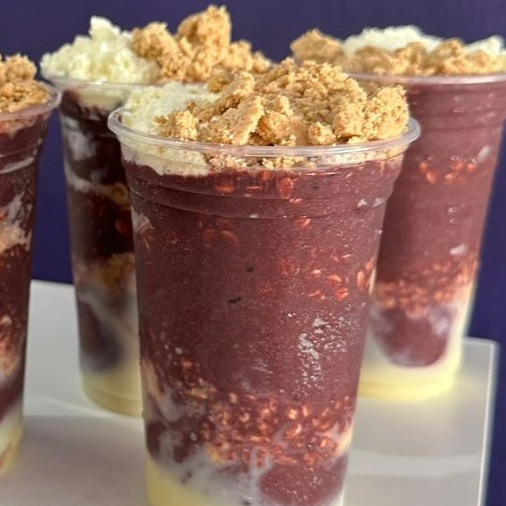 Monte seu açaí em camadas. Você pode fazer todas as combinações que deseja com deliciosos adicionais premium. Aproveite, entrega rápida!