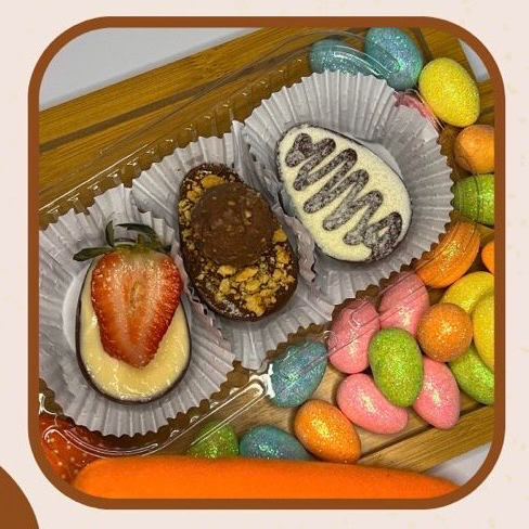 Contém 3 mini ovos com 50g cada ovo. Escolher os sabores nas observações. Ninho c/ Nutella, Ninho c/ Morango, Brigadeiro c/ Morango, Ferrero rocher, prestígio e Dois amores