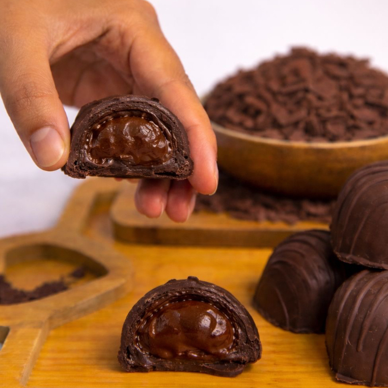 Casquinha de chocolate Blend e brigadeiro de maracujá
