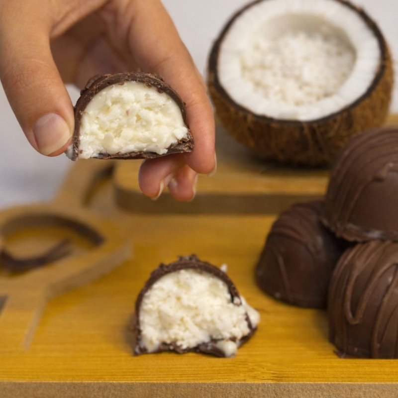 Casquinha de chocolate Blend e brigadeiro de coco