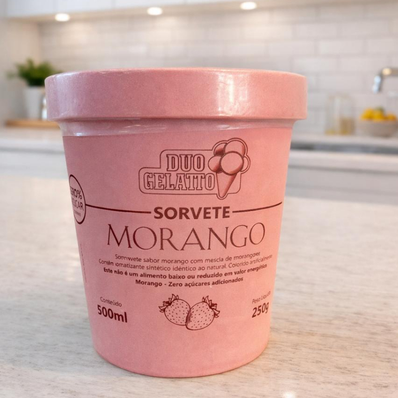 500 ml de sorvete cremoso de morango, doce, suave e irresistível.