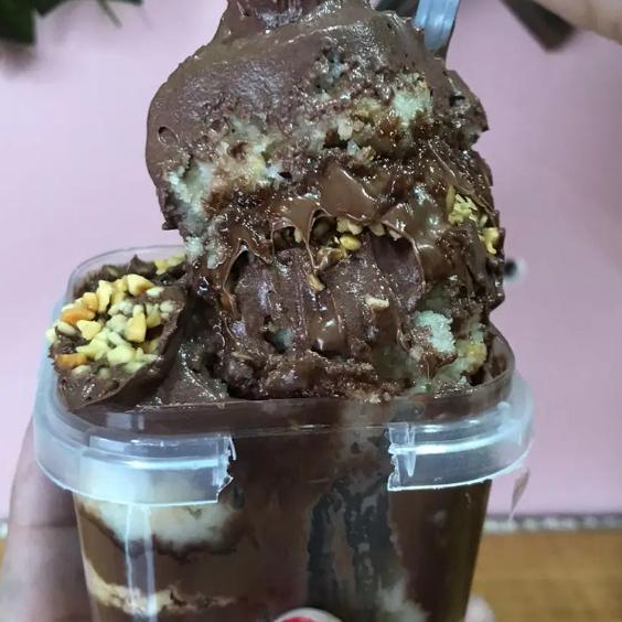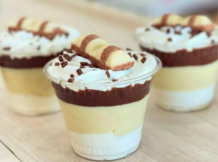 Travessa de aproximadamente 1litro com brigadeiro meio amargo, camadas do nosso Mousse de Ninho e pedaços de Kinder Bueno e Nutella. Serve de 5 a 6 pessoas.