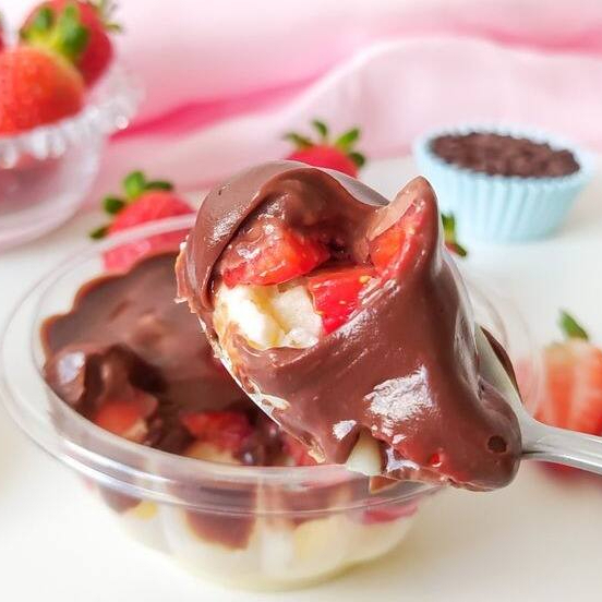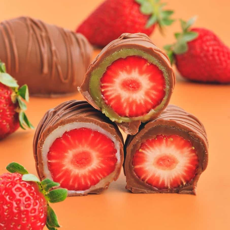 MORANGOS FRESCOS, CREME BELGA SUAVE E BRIGADEIRO DE CHOCOLATE