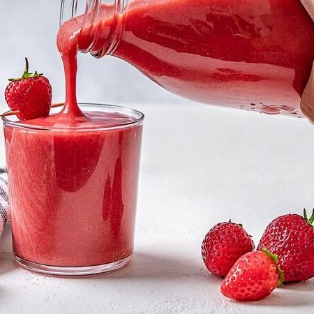 Suco Feito Com Morango Fruta Congelado. Garrafinha De 300ml