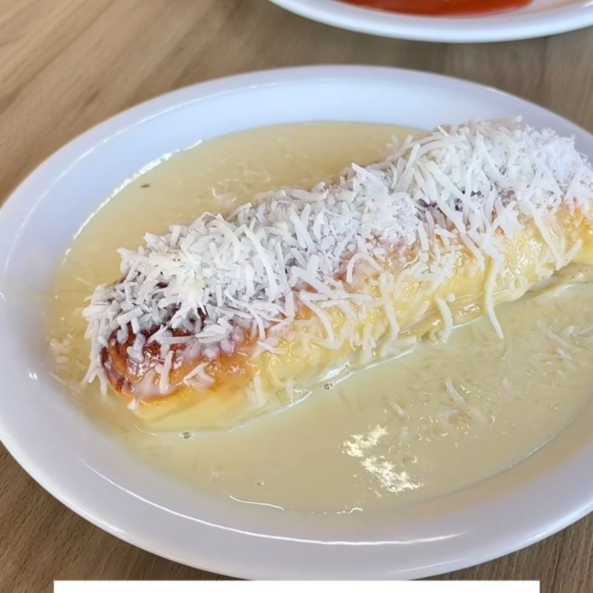 Massa branca com recheio de doce de leite caseiro, com Ninho e ameixa.