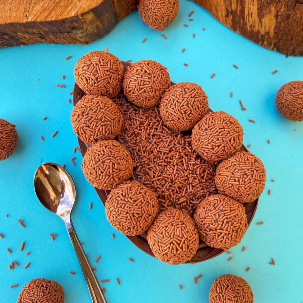 OVO DE PASCOA COM CASCA AO LEITE COM RECHEIO DE BRIGADEIRO MEIO AMARGO