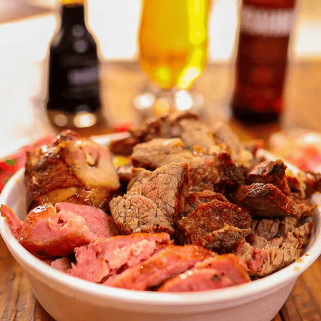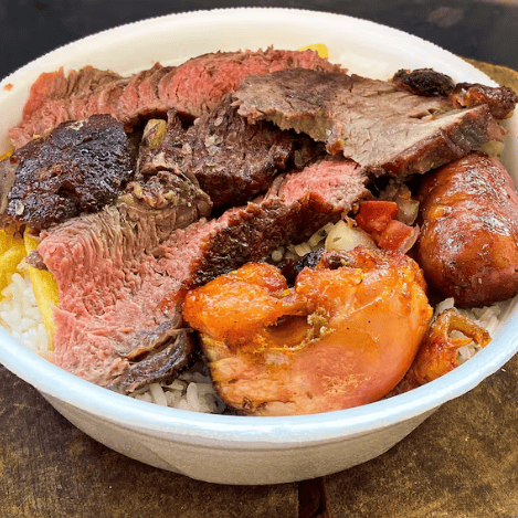 Cupim Suculento Assado na Brasa, Acompanhado de Arroz Soltinho, Feijão Tropeiro com Bacon e Calabresa, Mandioca na Manteiga e Vinagrete Fresquinho. Uma Jantinha Completa Que Mata a Fome!
