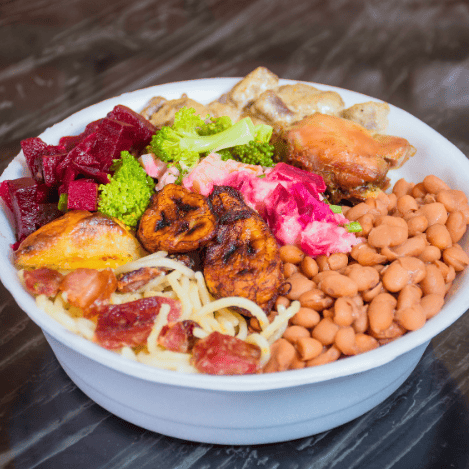 Jantinha Caprichada com Arroz Soltinho, Feijão Tropeiro com Bacon e Calabresa, Mandioca na Manteiga, Vinagrete e Espetinho à Sua Escolha. Acompanha Coca-Cola 350ml Bem Gelada Para Completar!