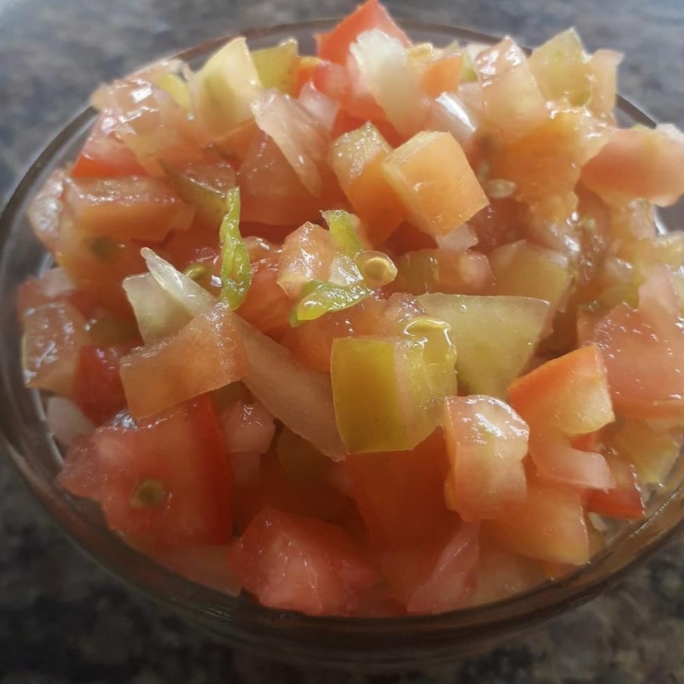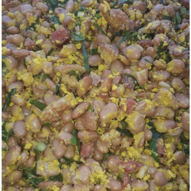 Arroz feijão tropeiro com mandioca e Vinagrete e batata palha