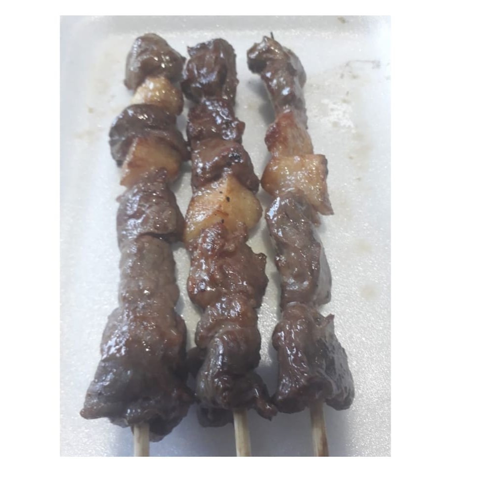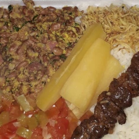 Arroz,feijao tropeiro,vinagrete,mandioca,batata palha 1 espeto de conta