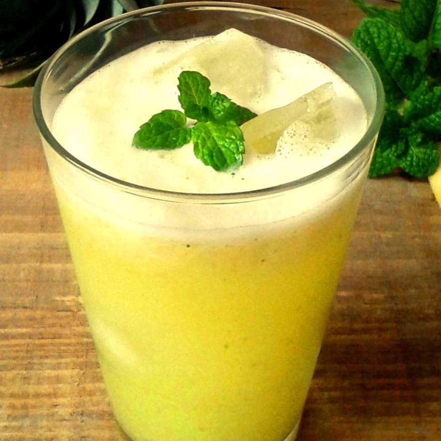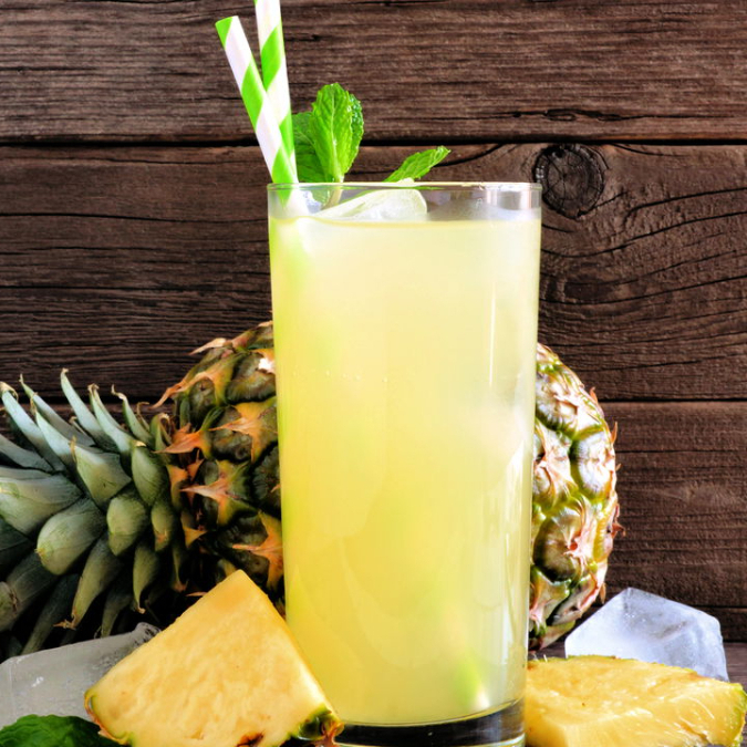 Abacaxi, Hortelã, gelo, água e açúcar.