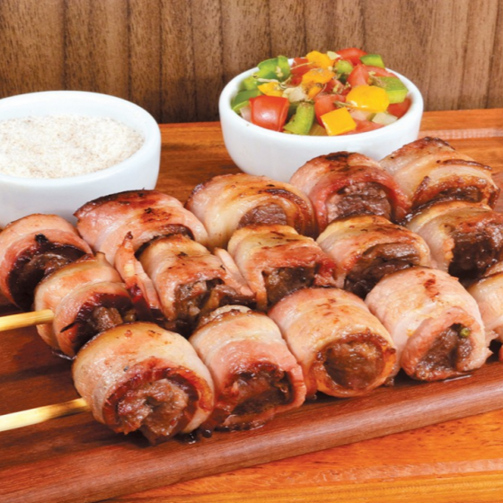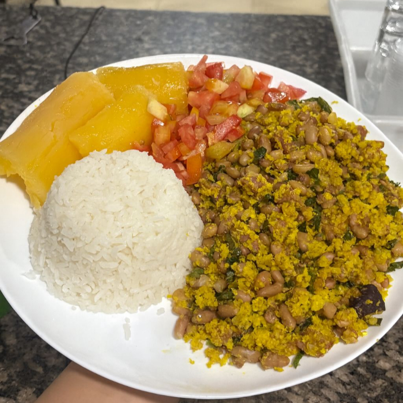 Uma refeição caprichada com arroz soltinho, feijão tropeiro, vinagrete fresquinho, mandioca cozida e um espeto á sua escolha. Tudo preparado com sabor caseiro e aquele toque especial!