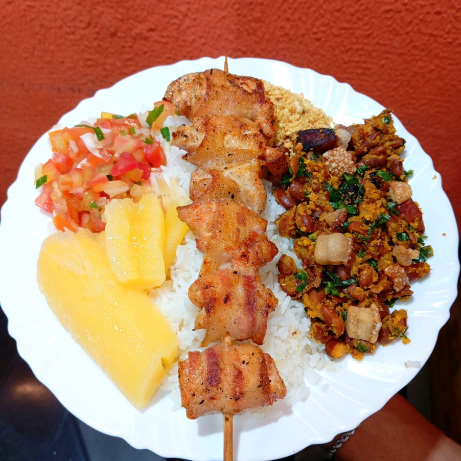 Acompanha:Feijão tropeiro bem temperado, mandioca e o espeto a escolha.