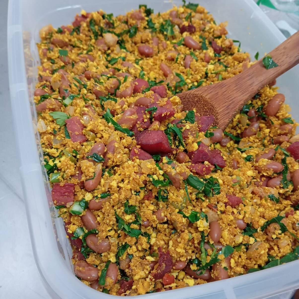 Experimente nossa jantinha completa, com arroz, feijão tropeiro, mandioca e vinagrete! Perfeita para o seu jantar!