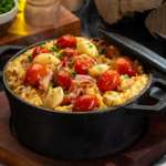 Arroz de Nata com Carne Serenada, Charque Desfiado, Mussarela, Requeijão e Queijo Coalho Frito. Uma Panelinha Carregada de Sabor Que Chega Cheirando e Faz Qualquer Um Salivar!