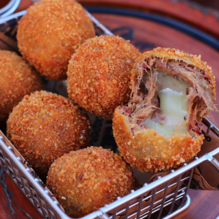 6 Unidades da Bolota de Costela Bovina Defumada e Desfiada, Recheadas com Queijo Derretido e Acompanhadas de Molho Barbecue. Petisco Mais Vendido da Casa e Campeão do Festival Bar em Bar 2022!