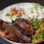 Coxão Duro Angus Vpj Bem Temperado, com Feijão Tropeiro, Arroz com Alho e Mandioca. Almoço de Respeito Pra Quem Gosta de Carne de Verdade!