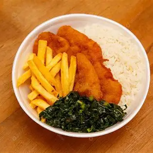 Marmita De Frango Empanado Com Arroz Branco Feijão Tropeiro E Batata Frita
