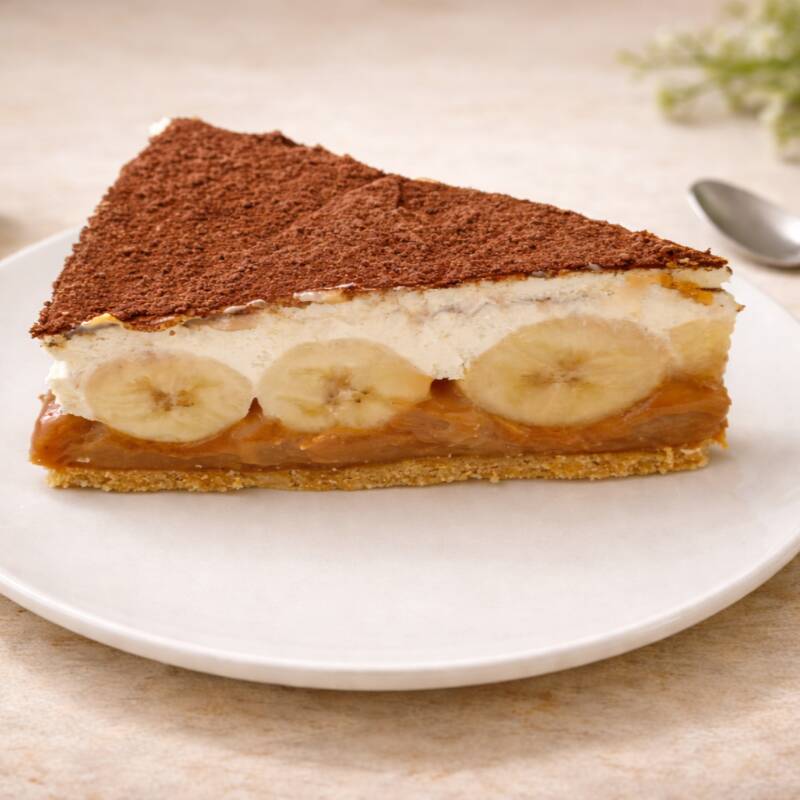 (aprox. 250g) Base crocante de biscoito, camada generosa de doce de leite cremoso, bananas frescas e creme chantilly feito com nata, finalizado com cacau e um toque de canela. Clássico e equilibrado.