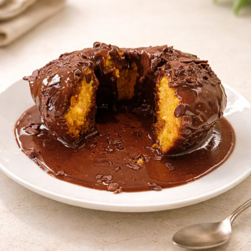 Massa artesanal de cenoura, leve e úmida, envolvida por uma camada generosa de calda de chocolate cremosa e granulado por cima. Cada mordida entrega maciez, cremosidade e aquele contraste perfeito.