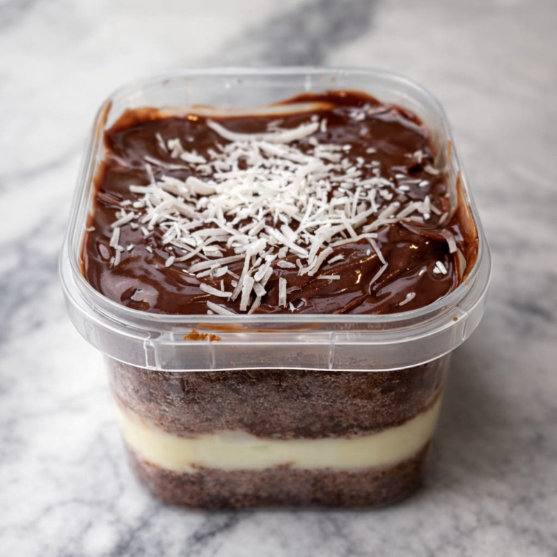 (aprox. 200g) Bolo de chocolate fofinho e bem molhadinho, com recheio cremoso de coco e cobertura de chocolate. Uma sobremesa saborosa e irresistível, perfeita para quem ama a combinação clássica de chocolate com coco.