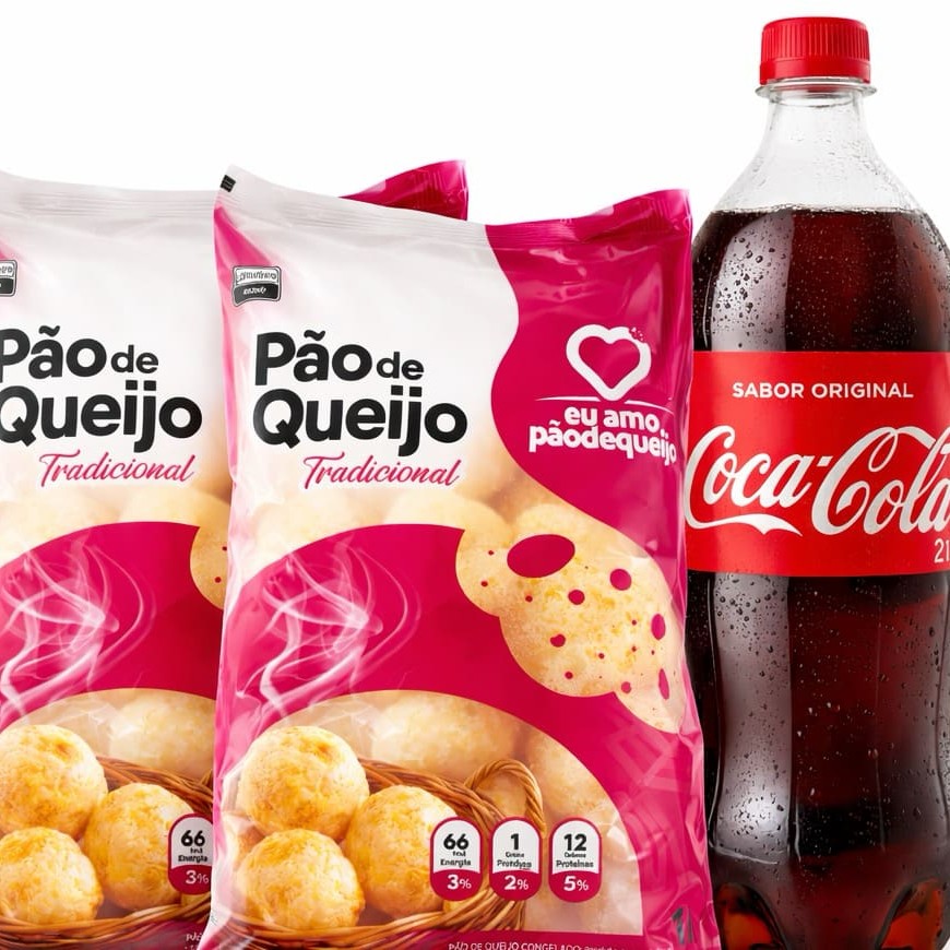 2 pacotes de Pão de Queijo (1kg cada) + 1 Coca Cola 2l
