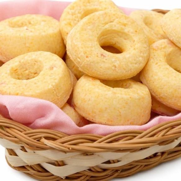 Pacote com 1kg de biscoito de queijo congelado suíço.
