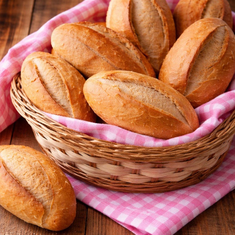 Pão francês congelado, 1kg, crocante por fora e macio por dentro. Tempo de preparo: 10horas
