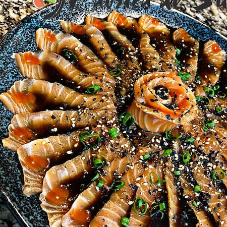 Fatias de Salmão c/ cebolinha e molho especial - 10 Unidades