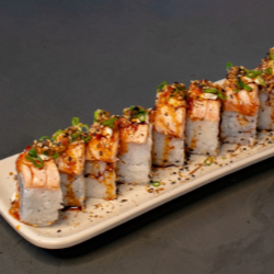 Arroz Japonês, camarão, cream cheese, salmão selado e calda Sweet Chilly - 10 Unidades