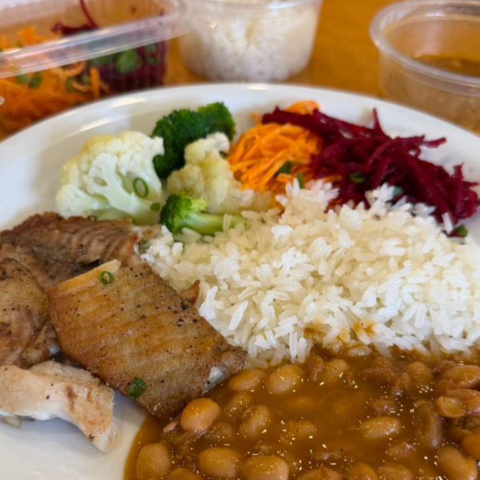 Deliciosa tilápia grelhada, preparada no ponto certo para realçar seu sabor leve e suculento. Acompanha arroz branco soltinho, feijão carioca de caldo bem temperado e uma seleção de legumes frescos: brócolis, couve-flor, cenoura ralada e beterraba ralada. Uma refeição equilibrada, nutritiva e cheia de sabor, perfeita para quem busca comer bem no Dia a Dia. ️