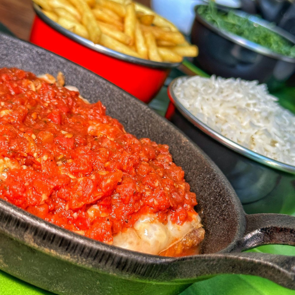 Clássico irresistível: Filé empanado, coberto com molho de tomate caseiro e generosa camada de queijo derretido, gratinado até dourar. Acompanhado de arroz branco, fritas ou purê de batata. Um prato completo e cheio de sabor!
