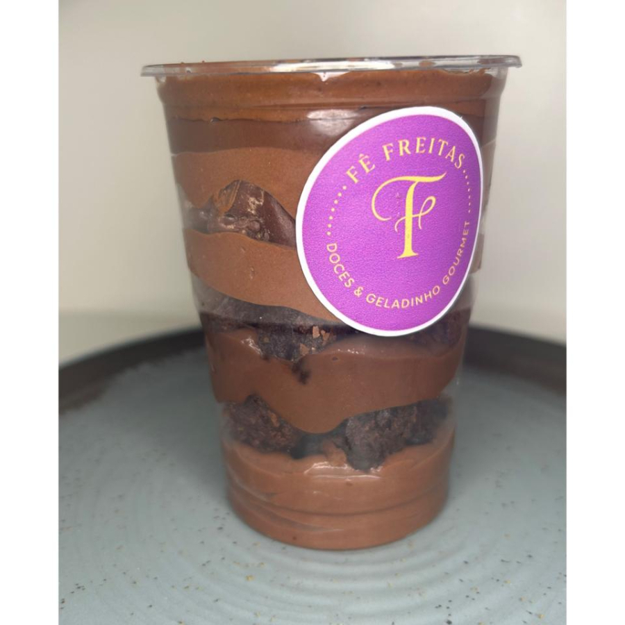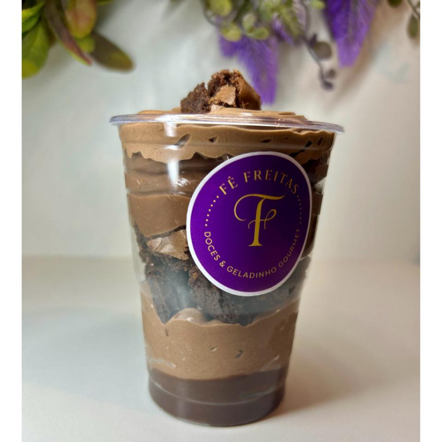 Chocobrownie: brigadeiro + brownie + mousse de chocolate. (copo 250ml)