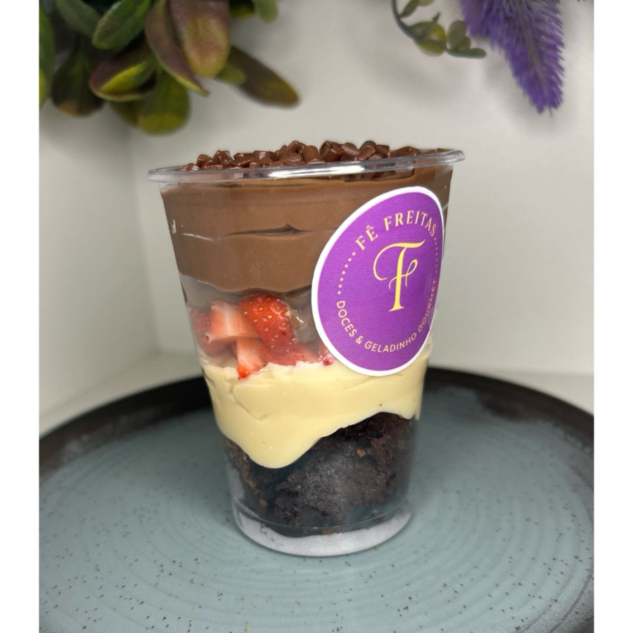 Brownie c\ brigadeiro de ninho morango e brigadeiro de chocolate e granulado ao leite (copo 250ml )