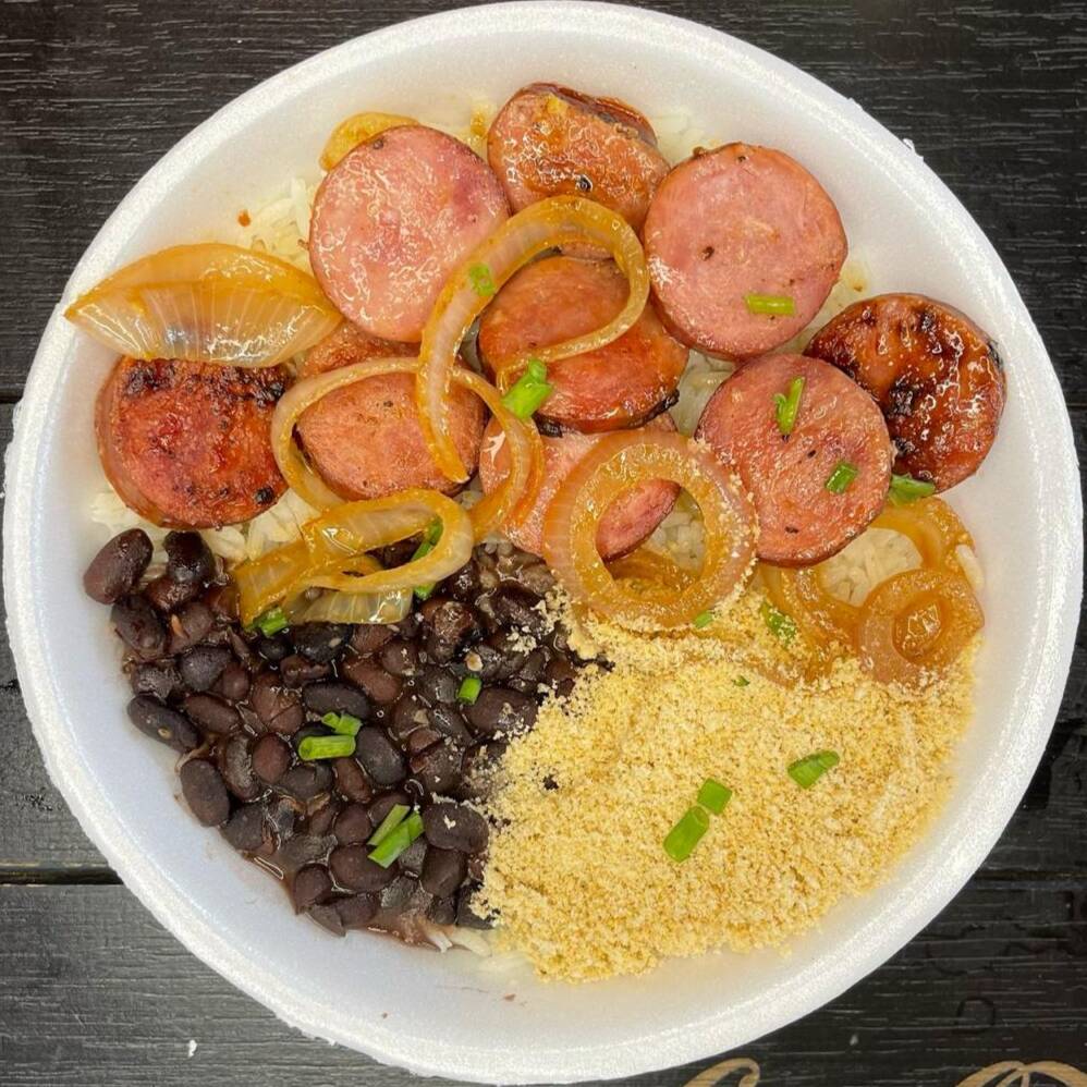 Marmita com deliciosa calabresa acebolada acompanhado de arroz branco, farofa caseira e feijão preto. Marmita indicada para 01 pessoa.