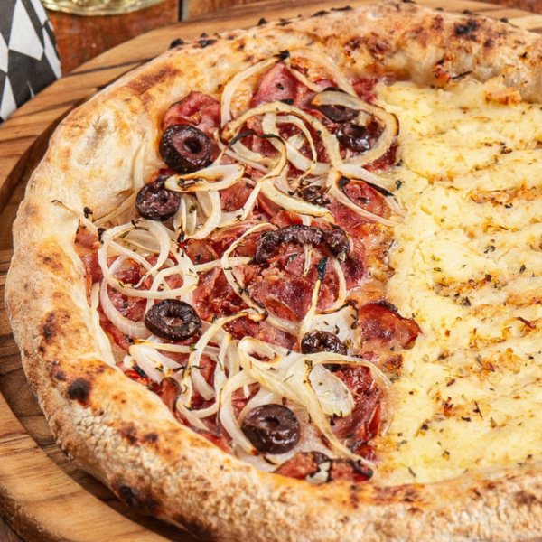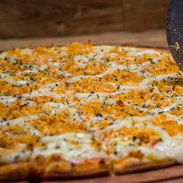 Muçarela Derretida, Requeijão Cremoso, Gorgonzola Marcante e Parmesão Finalizando, Com Massa Maturada Mais Crocante. Intensa, Cremosa e Irresistível