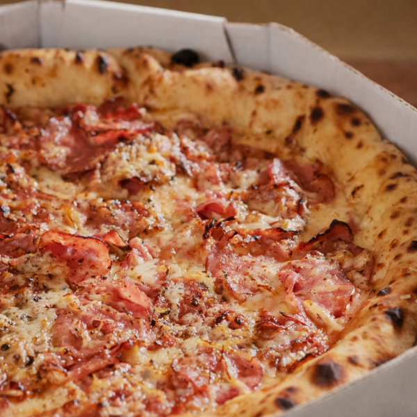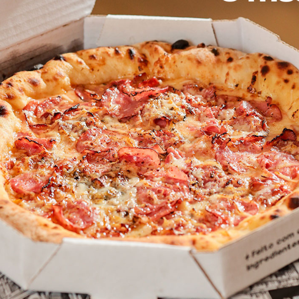Bacon Crocante e Suculento Sobre Muçarela Derretida, Molho de Tomate Equilibrado, Com Massa Maturada Crocante. Forte, Saborosa e Viciante