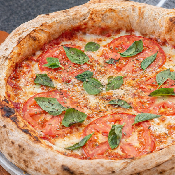 Muçarela Derretida, Tomate Fresco, Parmesão Finalizando e Manjericão Aromático, Com Massa Maturada Crocante. Clássica, Leve e Cheia de Sabor