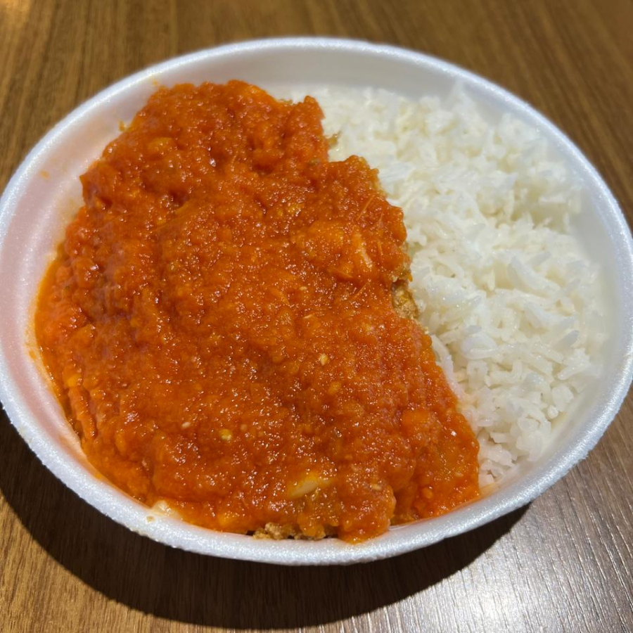 Parmegiana de frango, arroz soltinho
