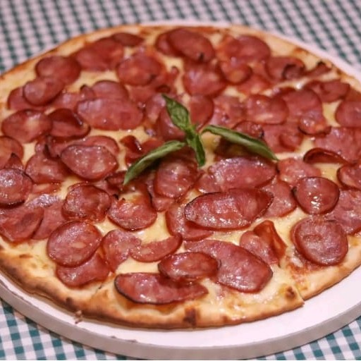 Calabresa, mussarela, azeitona, cebola e orégano