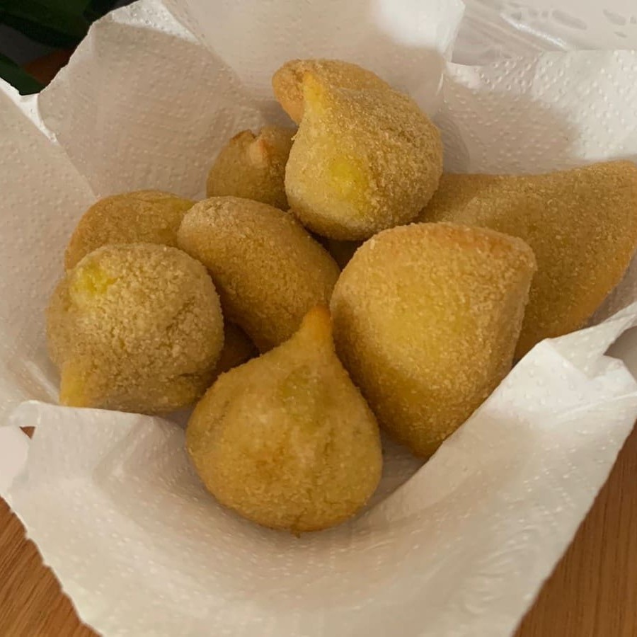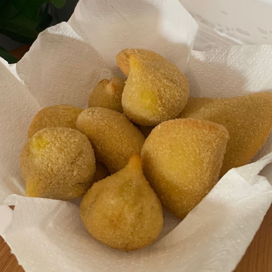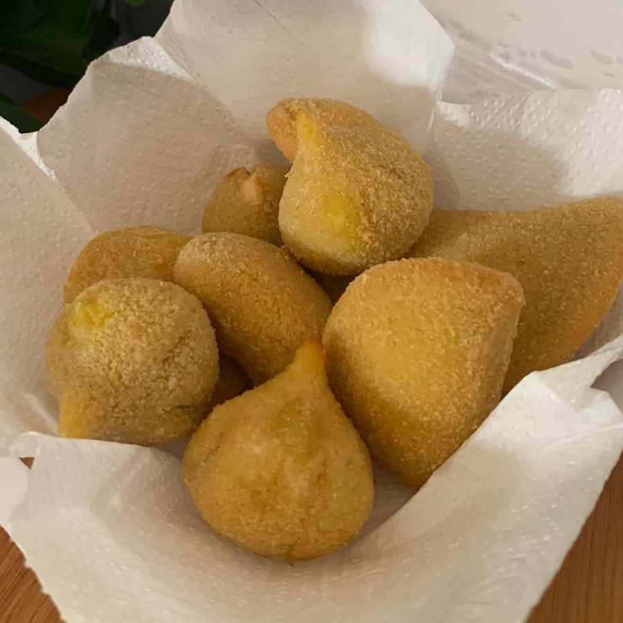 Coxinha recheada com frango e Catupiry Original, empanada na farinha panko.