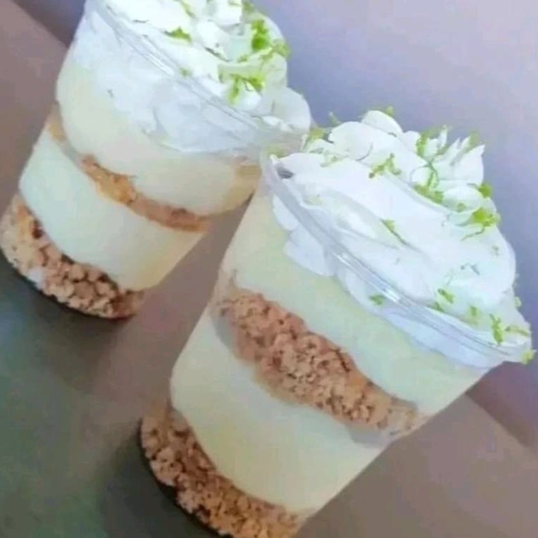 Delicioso tortinha de limão no pote, com duas camadas de biscoito crocante e duas camadas gênerosa, deliciosa, refrescante de creme de limão, finalizado com chantilly e raspinhas de limão. 150 ml